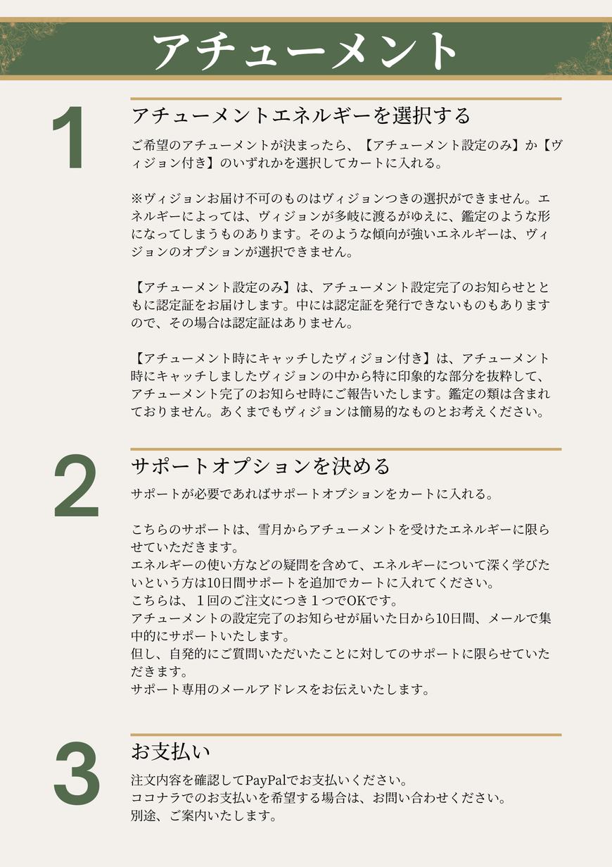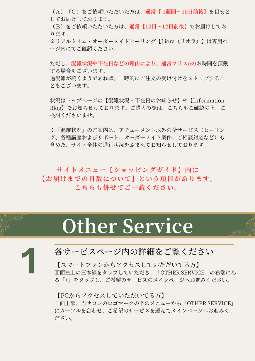 アチューメント以外の全サービス(ヒーリング、各種講座およびサポート、オーダーメイド案件、ご相談対応など)も含めた、サイト全体の進行状況をふまえてお知らせしております。